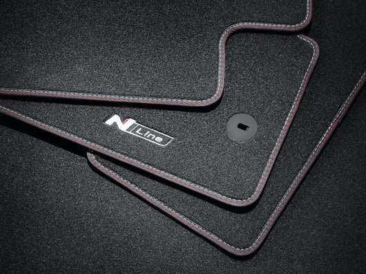 Додайте гарне, але міцне покриття для підлоги вашого автомобіля з високоякісного велюру. Зроблені на замовлення килимки мають логотип N Line у ​​передньому ряду та фіксуються за допомогою точок кріплення та протиковзкої підкладки. Набір із 4 шт.